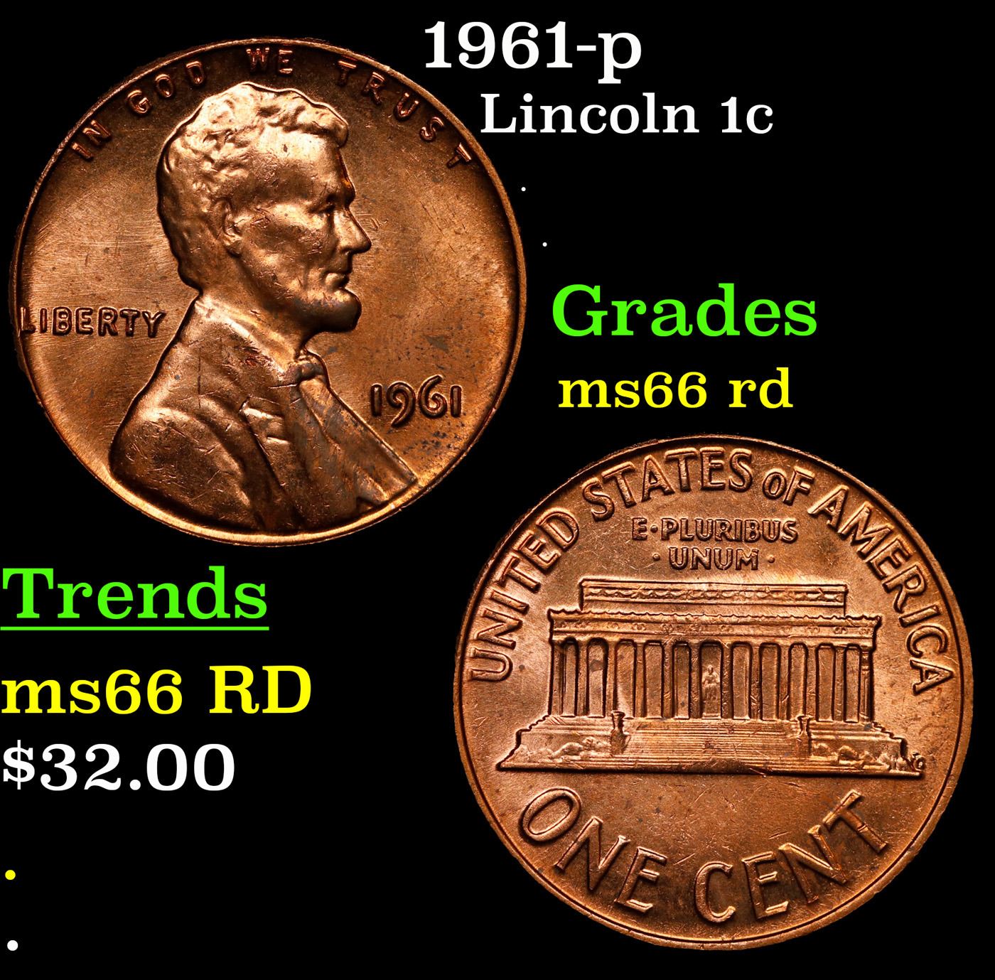 1961-p Lincoln Cent 1c Grades GEM+ Unc RD.