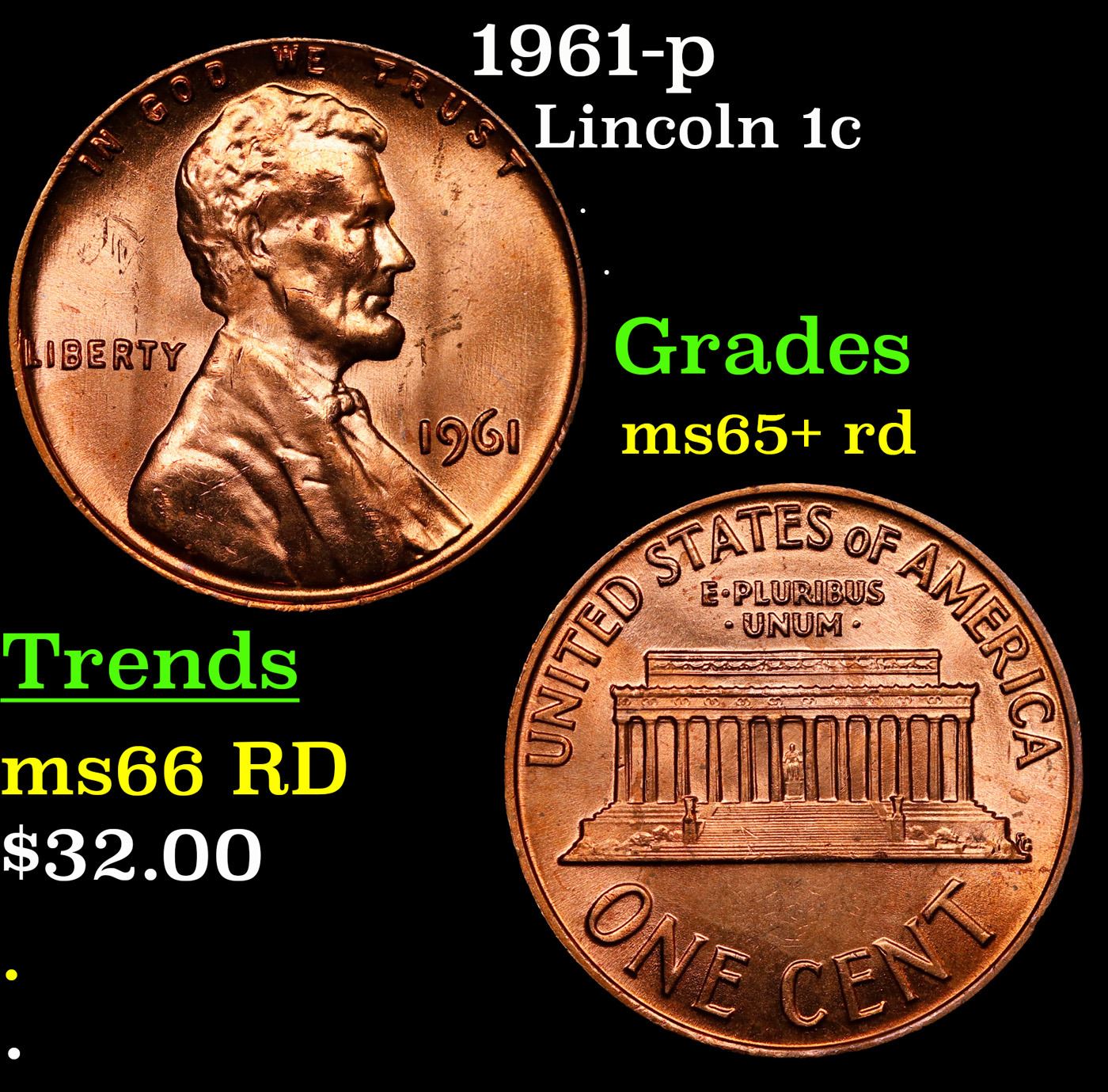 1961-p Lincoln Cent 1c Grades Gem+ Unc RD.