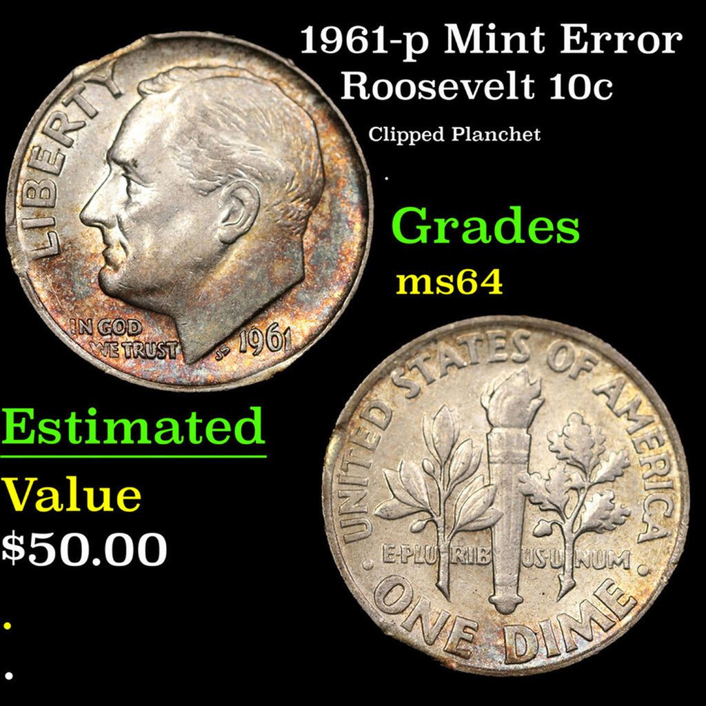 1961-p Mint Error Roosevelt Dime 10c Grades Choice Unc.
