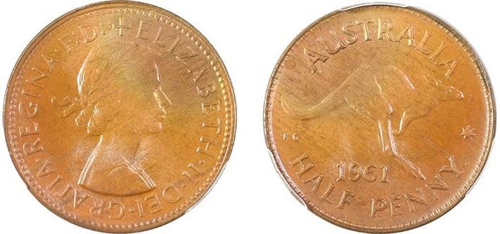 1961Y. Australian QEII Half Penny - PCGS MS 65BN