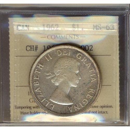 1962 $1 CH#1962 Rev-002 ICCS MS63.