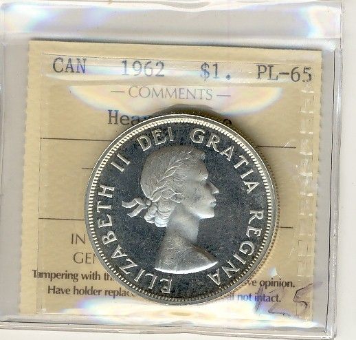 1962 1 Dollars, ICCS PL65; Heavy Cameo.