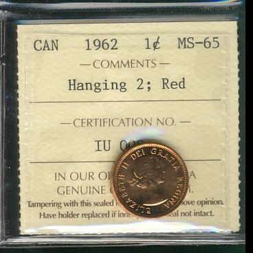 1962 1¢ Hanging 2 ICCS MS65RD.