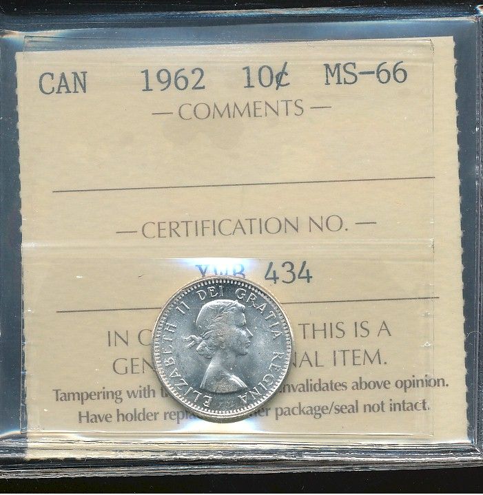 1962 10¢ ICCS MS66. Blast white and fully lustrous.