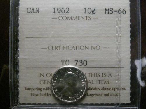 1962 10¢ ICCS MS66. Fabulous eye appeal with great luster.