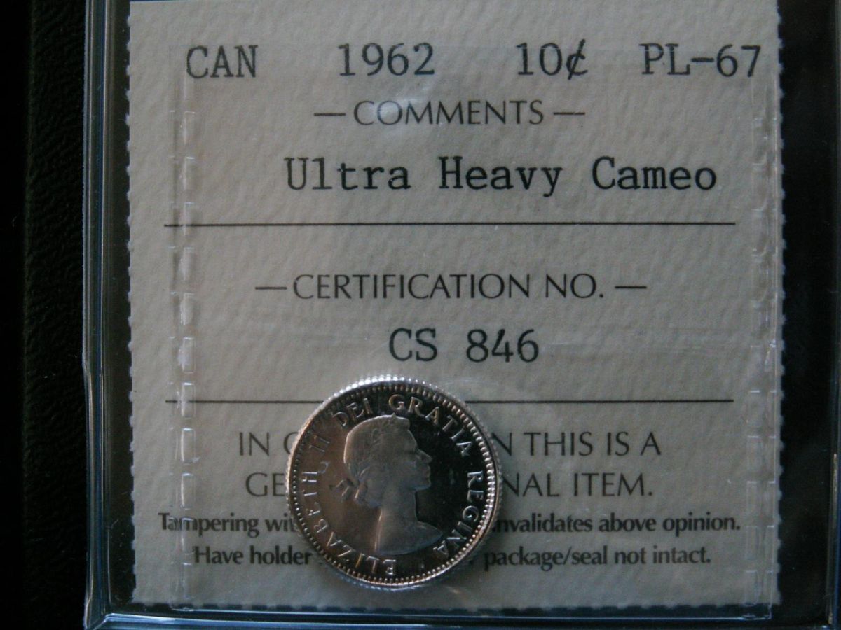 1962 10¢ ICCS PL67 ULTRA HEAVY CAMEO. Tied for finest graded
