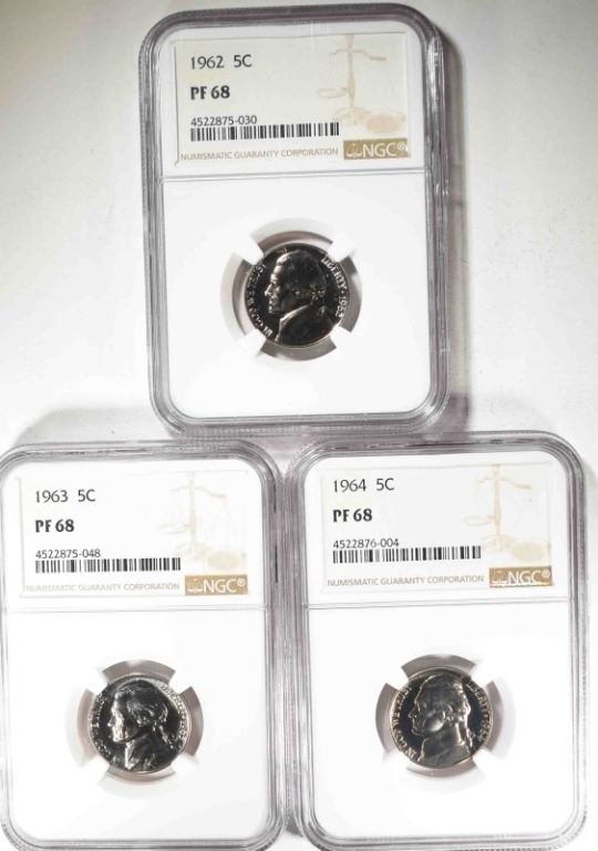 1962, 1963, 1964 JEFFERSON NICKELS NGC PF68