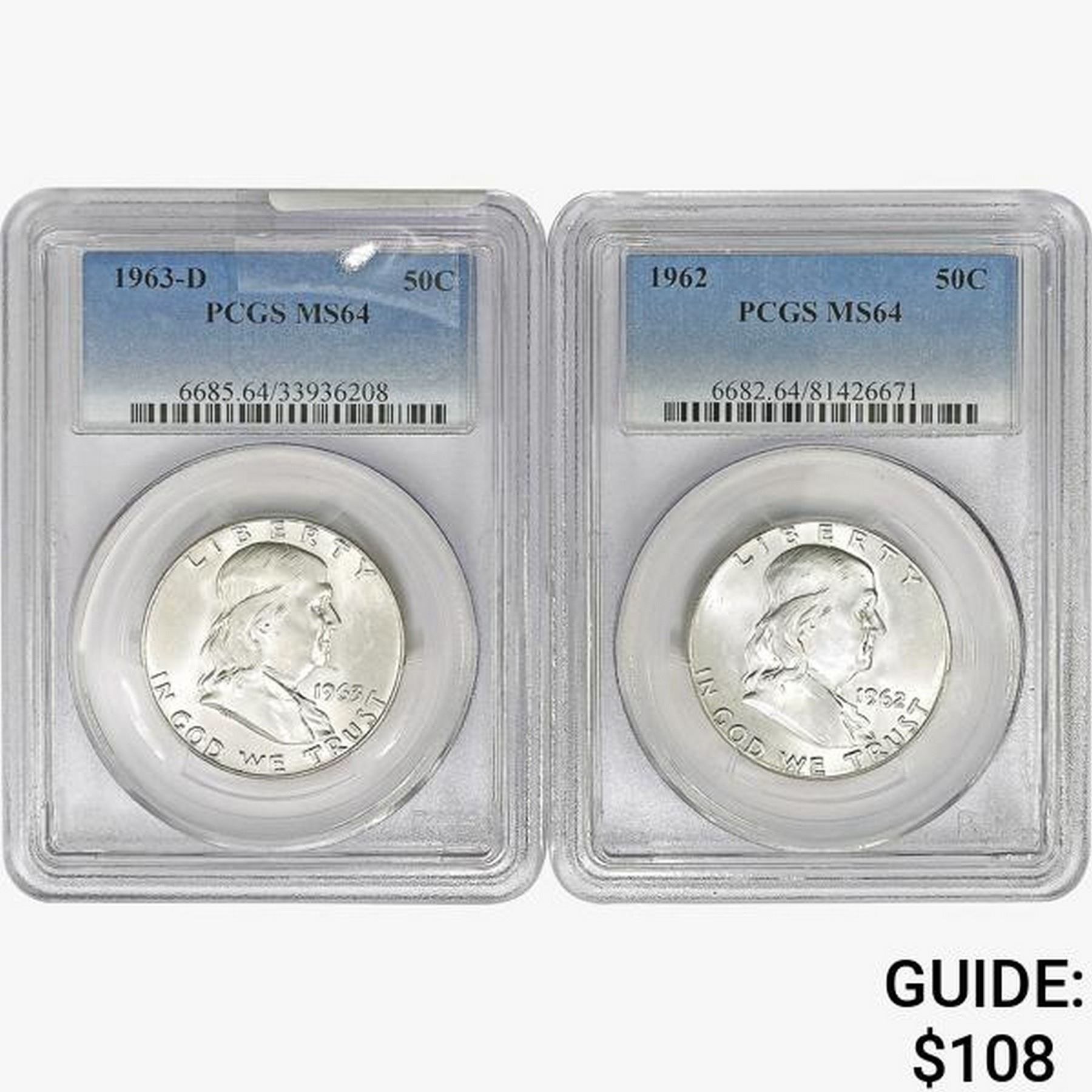 1962&1963 [2] Franklin Half Dollar PCGS MS64