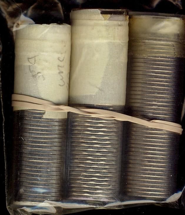 1962, 1964 & 1970 5¢ BU rolls. Lot of three BU rolls.