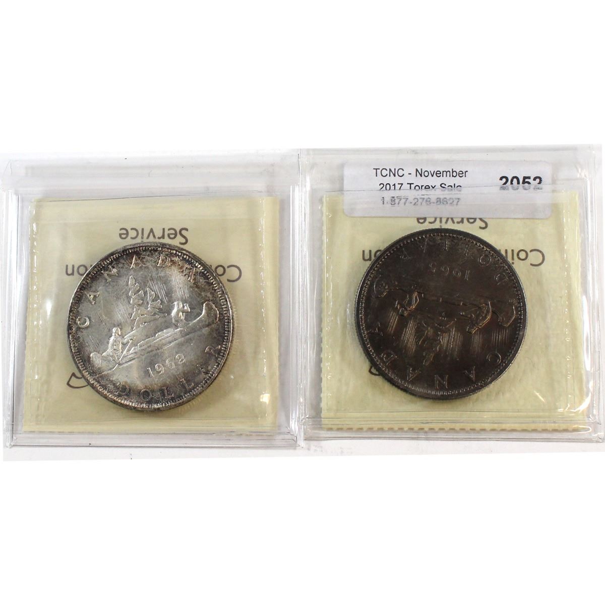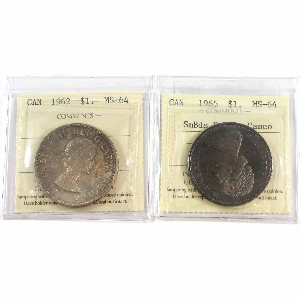 1962 & 1965 Small Beads Pointed 5 Cameo Silver $1 ICCS Certified MS-64. 2pcs