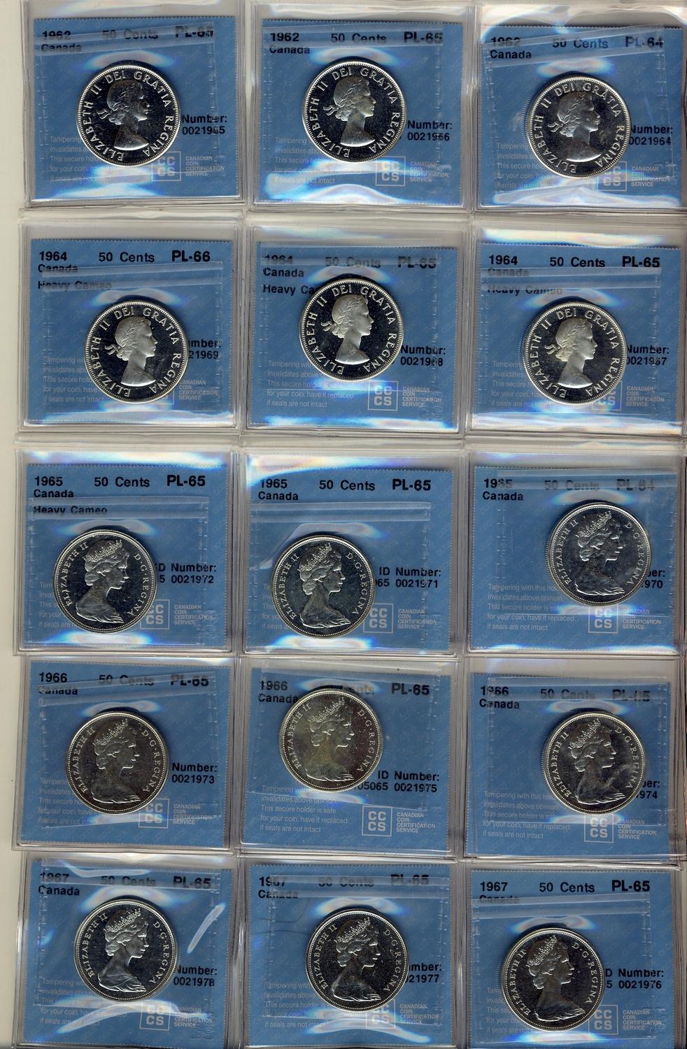 1962-1967 Proof Like 50¢. Lot includes 1962 PL64, PL65(2), 1964 PL65(2), PL66, 1965 PL64, PL65(2),