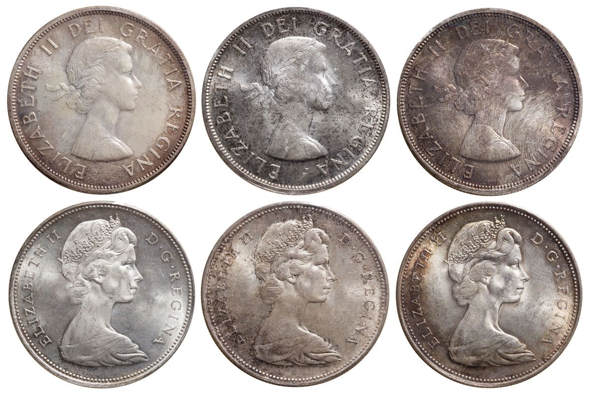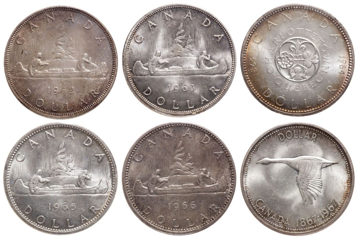 Set of six (6) coins, all ICCS graded Mint State-64. Lot of six (6) pieces.