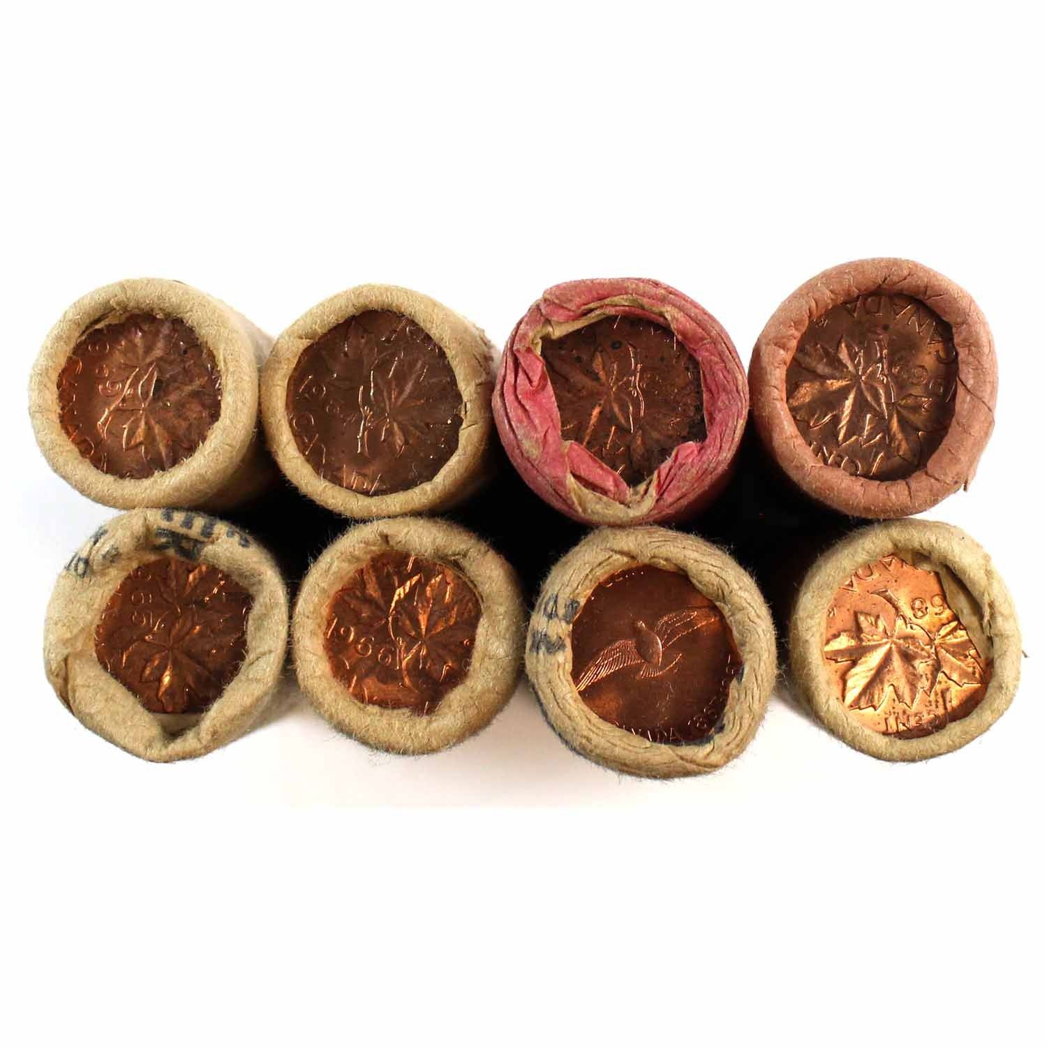*1962-1969 Canada 1-cent original roll of 50pcs. You will receive one of each date from 1962-1969. 8 rolls