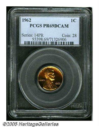 <B>1962<1C> PR69 Red Deep Cameo PCGS.</B></I> A spectacular representative with near flawless orange-gold surfaces and a razor-sharp strike. A specimen that is certain to please even the most demanding specialist. Population: 28 in 69, none finer (6/05).<BR><I>From The William Bickel Collection, Part One.</B></I>