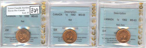 1962 2 CCCS certified MS-65 Red, MS-63 Red Harp and one 1950 CCCS MS-65 Red