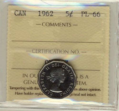 1962 5¢ ICCS PL66. Only 1 listed in POP report.