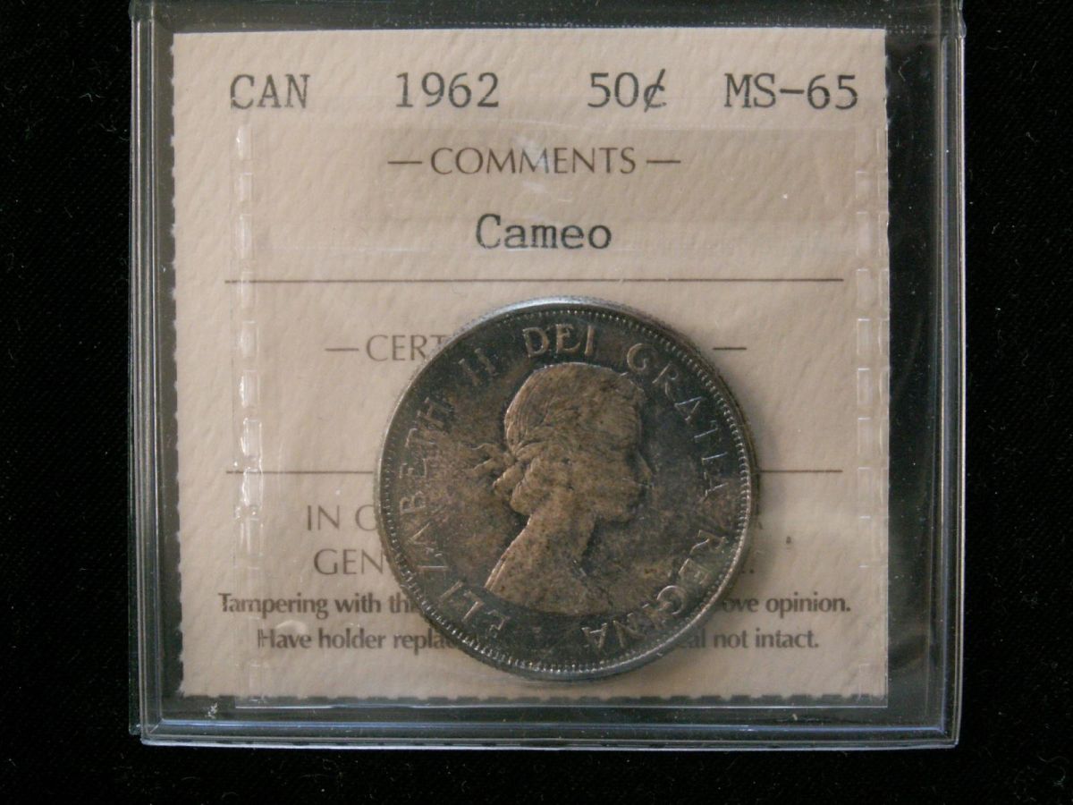 1962 50¢ ICCS MS65 Cameo. Nice with Intense blue gold tones.