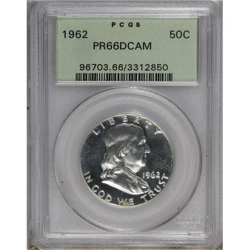 <B>1962 50C PR66 Deep Cameo PCGS.</B></I> PCGS Population (188/447). NGC Census: (198/667). Numismedia Wsl. Price for NGC/PCGS coin in PR66: $69. (#96703)<BR><BR><b>Shipping:</b> Coins & Currency (<a target="_blank" href="http://www.heritageauctions.com/common/shipping.php">view shipping information</a>)