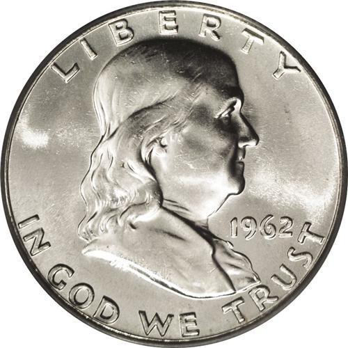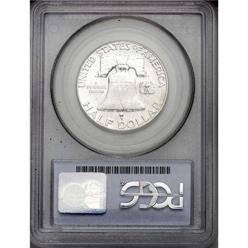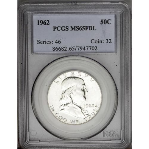 <B>1962<50C> MS65 Full Bell Lines PCGS.</B></I> Fully brilliant with extensive die polish lines on each side, this impressive example displays a few slight blemishes on the portrait of Franklin, and on the Liberty Bell. Nothing suggests that the Gem designation is not deserved. Population: 116 in 65, 3 finer (3/06).<BR><I>From The Alex & Nan Registry Sets.</B></I> <BR><BR><B>Important notice:</B> Heritage usually auctions material at the rate of 200-250 lots per hour. On some occasions eBay Live bid software or the Internet may not be able to keep up with the pace of the auction. We recommend placing a realistic absentee bid now as insurance to avoid disappointment. Occasionally the auctioneer may eliminate or reject an eBay Live bid, and the auctioneer may also reopen a lot after the close of the eBay live bidding (usually because we missed an audience bid), and may reject your bid even if it shows you as the winning bidder. By bidding via eBay Live, you agree that Heritage may award the lot to another bidder at its sole discretion under the circumstances described above or any other reasonable circumstances. Since eBay bids are not shown to us until we open the lot on the floor, we treat those bids just like floor bids. In most cases the floor responds before the eBay bid is presented to us, due to Internet lag time, so for consistency we have made it a policy that floor bids are always considered first over tie eBay live bids. Also please note that all Heritage lots purchased through eBay Live carry a 20% Buyer's Premium. Please make sure you read the Terms and Conditions before you bid. This lot is being auctioned in conjunction with a live floor auction by Heritage Galleries & Auctioneers. All final auction and invoice information will be supplied by Heritage Galleries & Auctioneers, and all other information should be considered preliminary. Lot:3131 <BR><BR><B>Winning Notification and Billing:</B> After the FINAL session in this auction is complete, Heritage will send e-mail and snail mail invoices. This process normally takes several days. All final auction and invoice information will be supplied by Heritage Galleries & Auctioneers, and all other information should be considered preliminary. <BR><BR>This auction will be conducted on a live auction floor and over the Internet through eBay Live. If you choose to place an absentee bid, please take a moment to <font color='#0000ff'><u><a href='http://pages.ebay.com/liveauctions/help/before/laabsentee.html'>learn how eBay Live absentee bidding works</a></u></font><font color='#000000'>