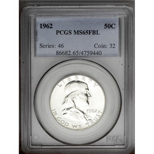 <B>1962<50C> MS65 Full Bell Lines PCGS.</B></I> Well struck and brilliant with flashy semi-reflective surfaces that show only the smallest of marks on either side. A visually captivating Gem. Population: 116 in 65, 3 finer (2/06).