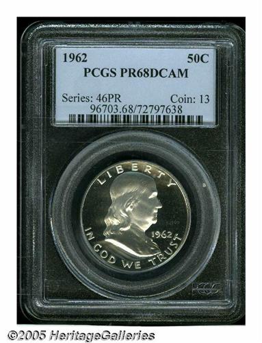 <B>1962<50C> PR68 Deep Cameo PCGS.</B></I> A gorgeous Superb Gem that is fully brilliant and has outstanding white on black contrast. Seemingly pristine, and with a razor-sharp strike. This coin would be a wonderful addition to a Registry Set.