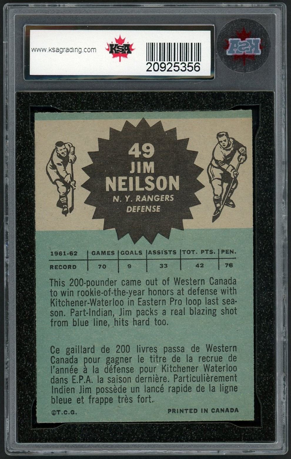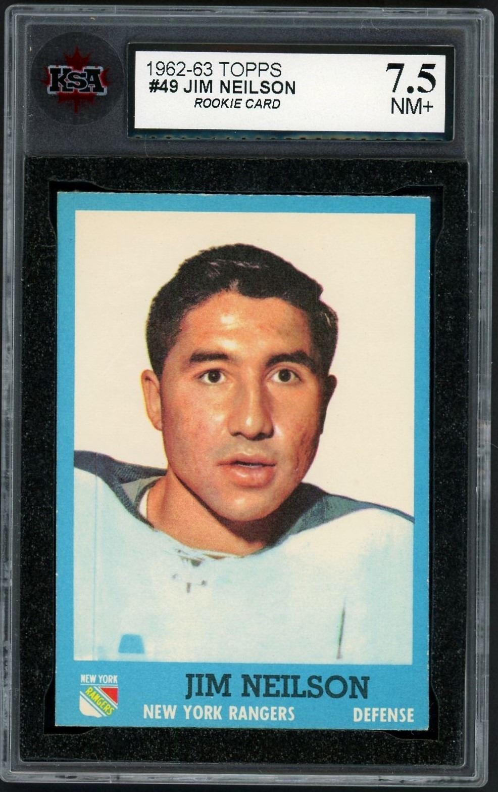 Rookie card of Nielson, a solid d-man who played over 1,000 NHL games, mostly as a member of the New York Rangers. Graded 7.5 NM+ by KSA.