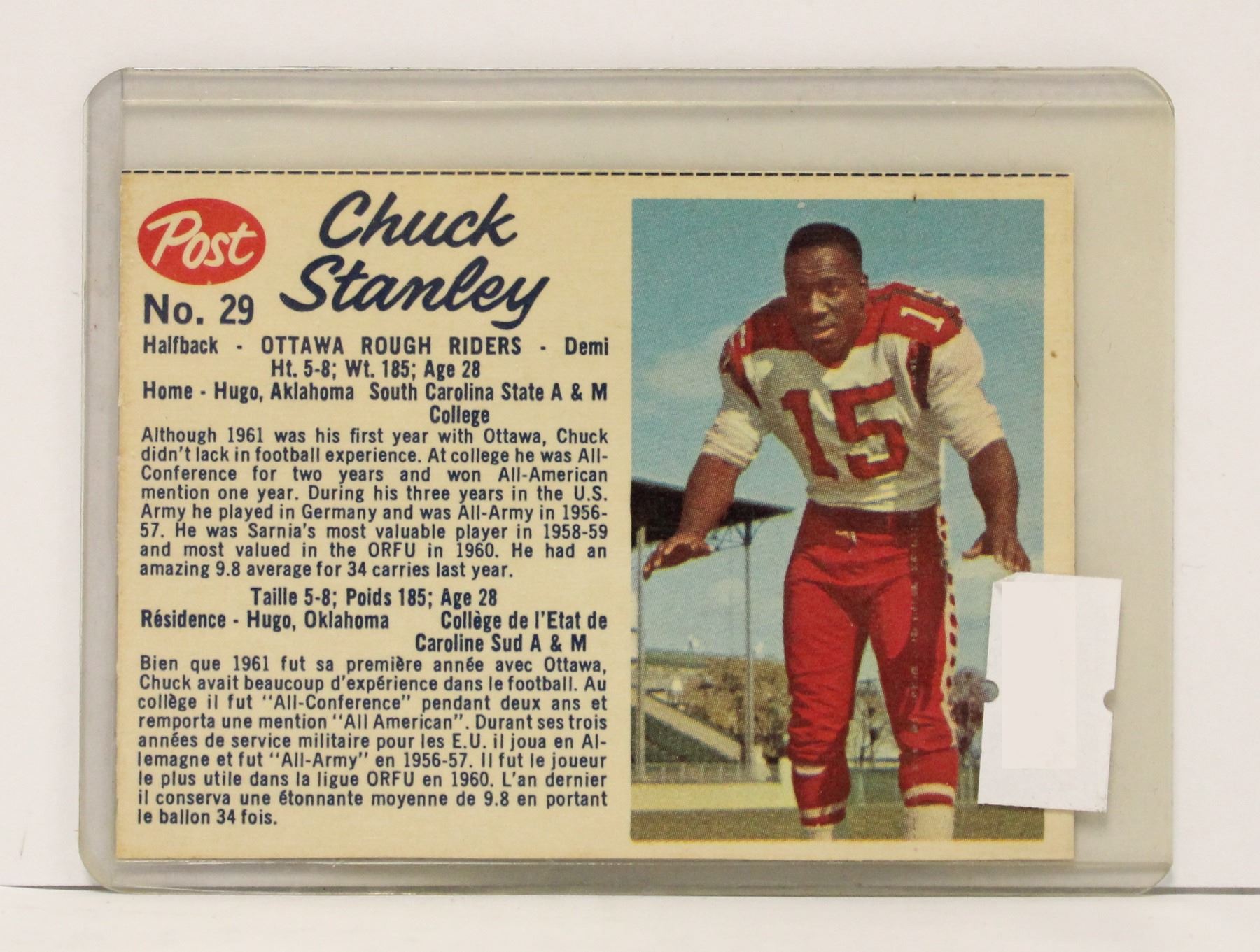 1962 CHUCK STANLEY CFL CARD