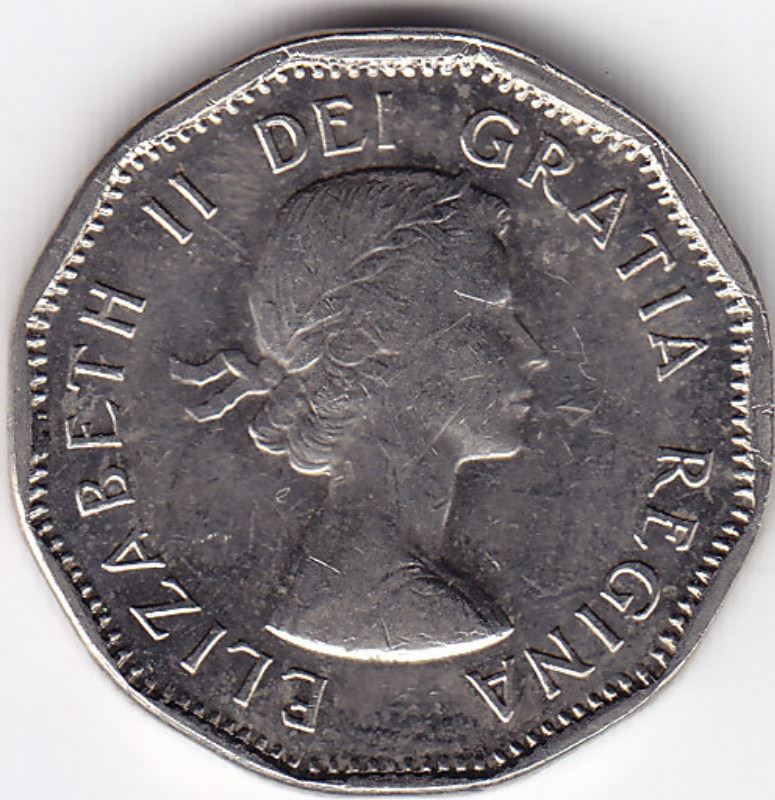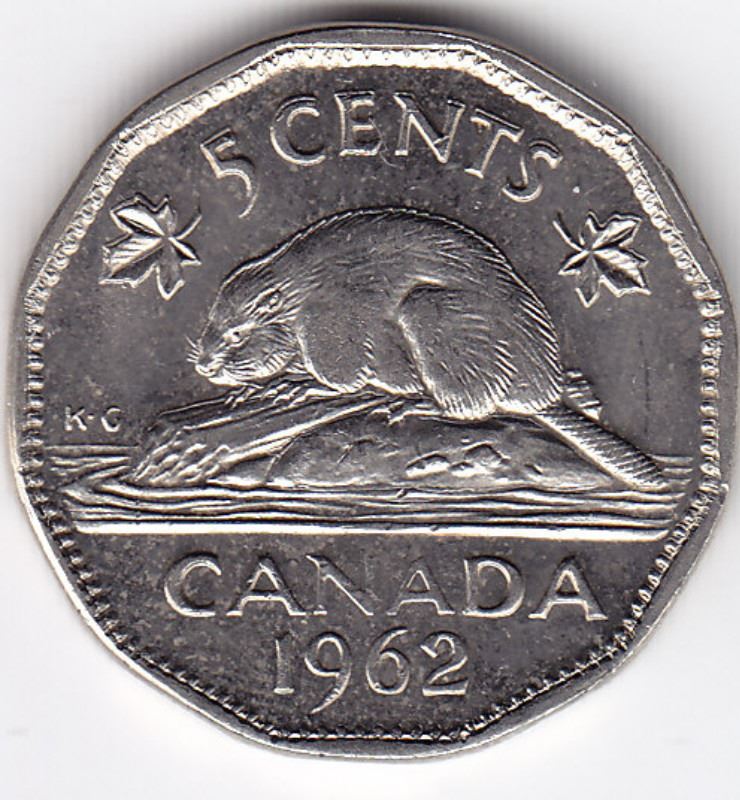 1962 Canadian 5-Cent Nickel Coin - Double Punched Reverse Error Coin - Very Nice!