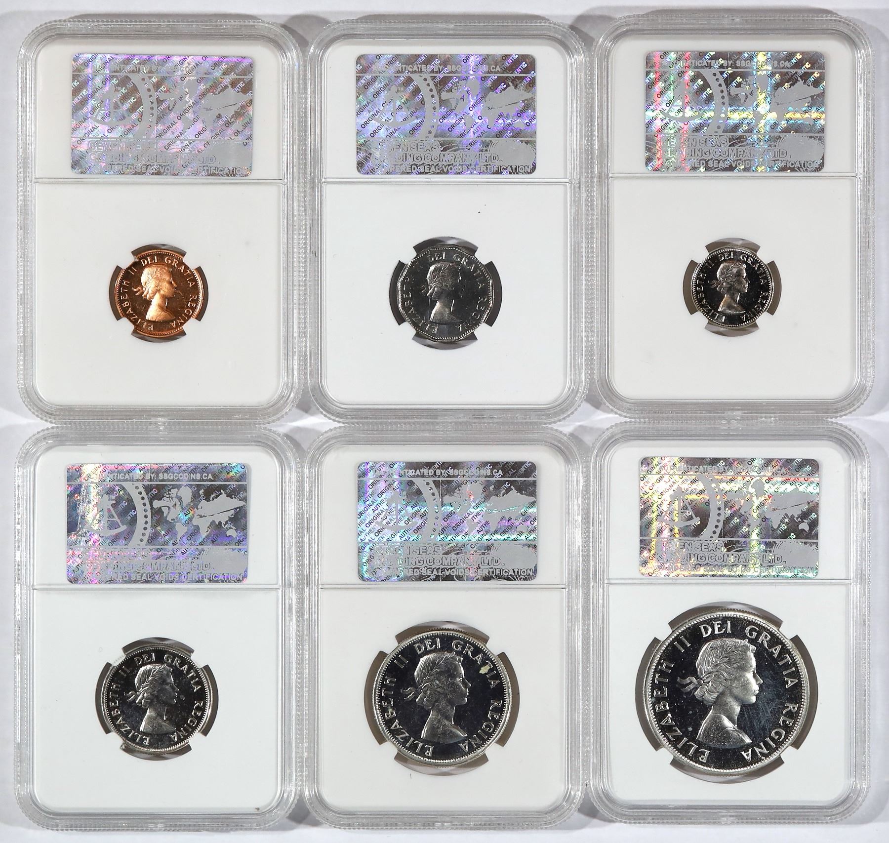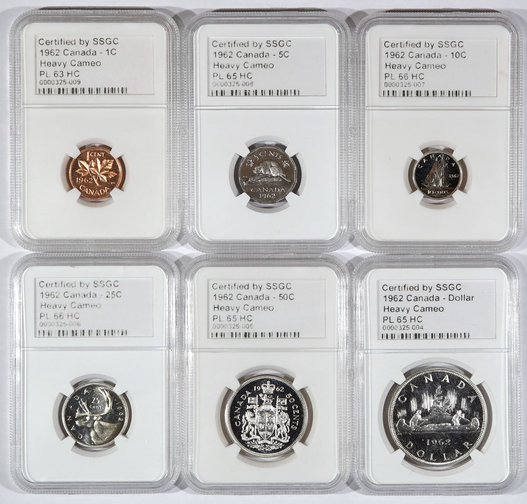 Full 1962 proof-like set housed in SSGC slabs, a brilliant uncirculated grouping that presents nicely. Viewing is recommended.