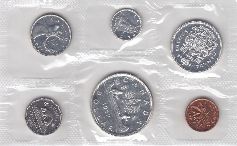 1962 Canadian Silver Proof-Like Coin Set - Original Ply & Envelope from RCM - 1.11 tr oz ASW