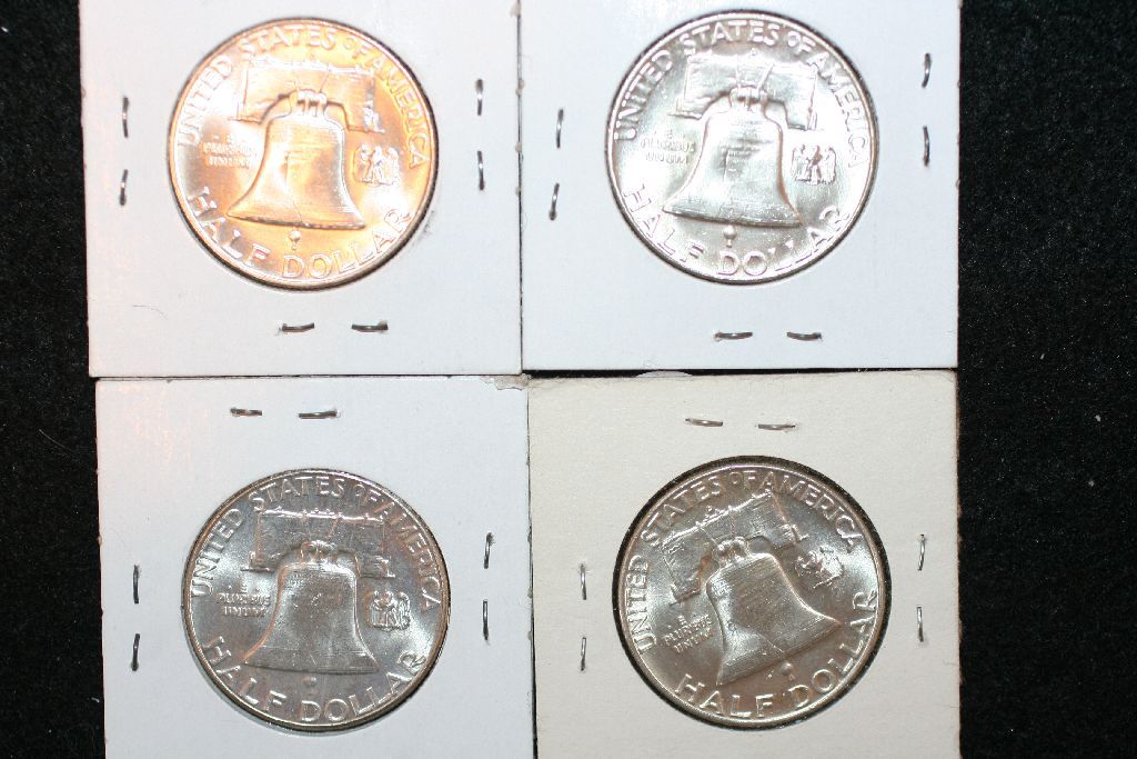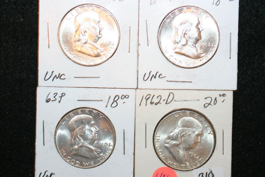 1962-D, 1962-D (UNC), 1963 (UNC) & 1963-D (UNC) Ben Franklin Half Dollar, Lot of 4