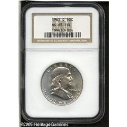 <B>1962-D 50C MS65 Full Bell Lines NGC.</B></I> Sharply struck with satiny luster and excellent eye appeal. The surfaces have light heather and iridescent toning.<BR><I>From The Mike Jacobson Collection.</B></I> Lot:8269