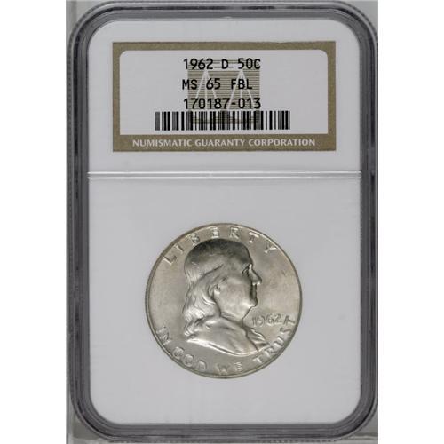 <B>1962-D<50C> MS65 Full Bell Lines NGC.</B></I> Wisps of tan toning grace this thoroughly lustrous and carefully preserved late date Gem. Better struck than the usual '62-D. Census: 65 in 65 FBL, 0 finer (3/06).<BR><I>From The Alex & Nan Registry Sets.</B></I> <BR><BR><B>Important notice:</B> Heritage usually auctions material at the rate of 200-250 lots per hour. On some occasions eBay Live bid software or the Internet may not be able to keep up with the pace of the auction. We recommend placing a realistic absentee bid now as insurance to avoid disappointment. Occasionally the auctioneer may eliminate or reject an eBay Live bid, and the auctioneer may also reopen a lot after the close of the eBay live bidding (usually because we missed an audience bid), and may reject your bid even if it shows you as the winning bidder. By bidding via eBay Live, you agree that Heritage may award the lot to another bidder at its sole discretion under the circumstances described above or any other reasonable circumstances. Since eBay bids are not shown to us until we open the lot on the floor, we treat those bids just like floor bids. In most cases the floor responds before the eBay bid is presented to us, due to Internet lag time, so for consistency we have made it a policy that floor bids are always considered first over tie eBay live bids. Also please note that all Heritage lots purchased through eBay Live carry a 20% Buyer's Premium. Please make sure you read the Terms and Conditions before you bid. This lot is being auctioned in conjunction with a live floor auction by Heritage Galleries & Auctioneers. All final auction and invoice information will be supplied by Heritage Galleries & Auctioneers, and all other information should be considered preliminary. Lot:3133 <BR><BR><B>Winning Notification and Billing:</B> After the FINAL session in this auction is complete, Heritage will send e-mail and snail mail invoices. This process normally takes several days. All final auction and invoice information will be supplied by Heritage Galleries & Auctioneers, and all other information should be considered preliminary. <BR><BR>This auction will be conducted on a live auction floor and over the Internet through eBay Live. If you choose to place an absentee bid, please take a moment to <font color='#0000ff'><u><a href='http://pages.ebay.com/liveauctions/help/before/laabsentee.html'>learn how eBay Live absentee bidding works</a></u></font><font color='#000000'>
