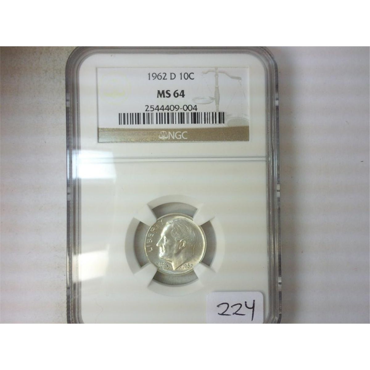 1962-D SILVER ROOSEVELT DIME NGC MS64