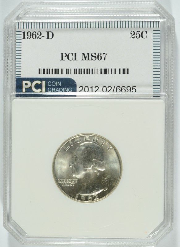 1962-D WASHINGTON QUARTER, PCI MS-67 TRENDS FOR $5000.00