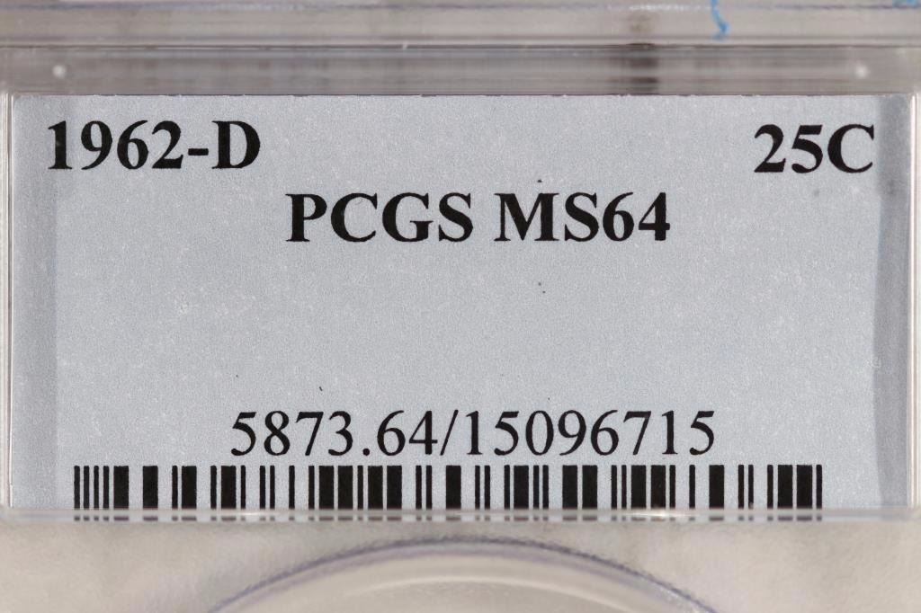 1962-D WASHINGTON SILVER QUARTER PCGS MS64
