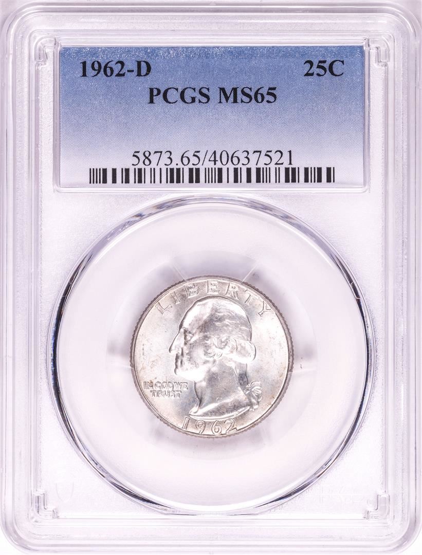 One 1962-D Washington Quarter Coin PCGS MS65. PCGS Graded.
