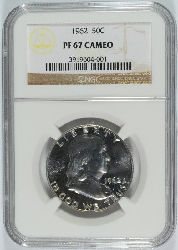 1962 FRANKLIN HALF DOLLAR, NGC PROOF-67 CAMEO!