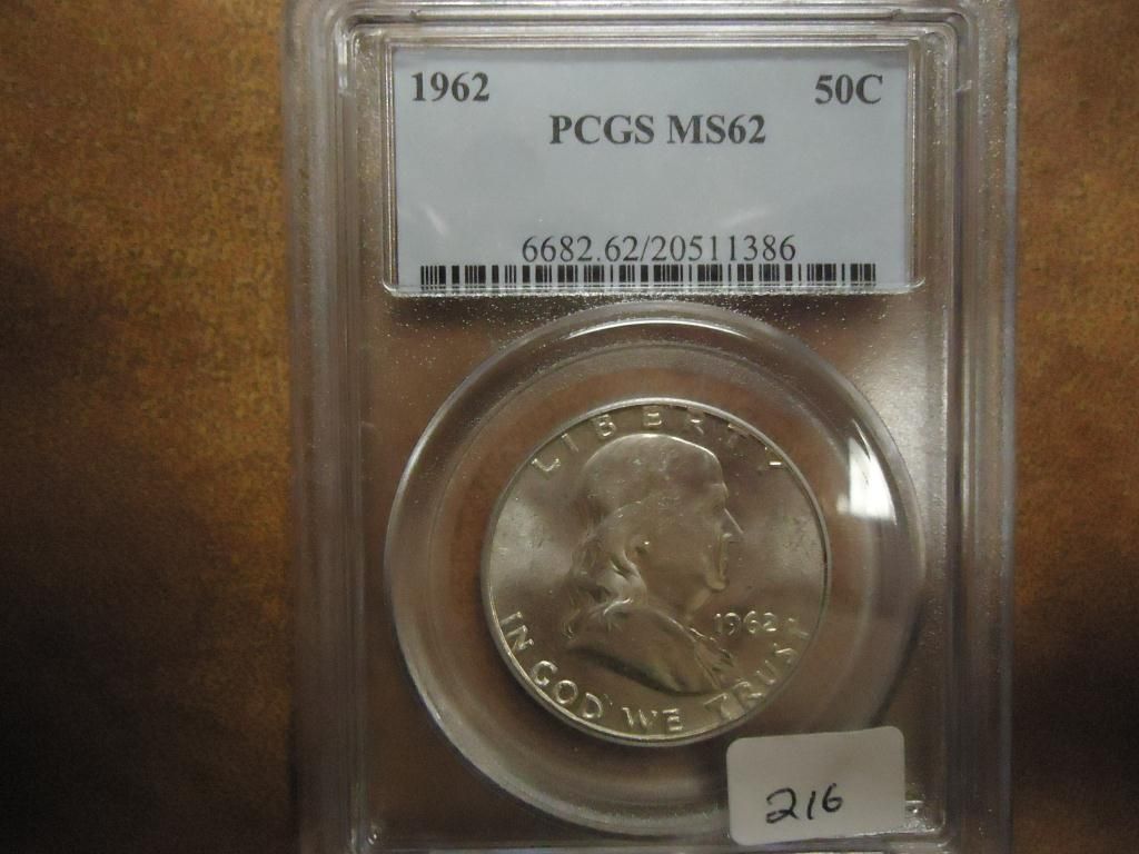 1962 FRANKLIN HALF DOLLAR PCGS MS62