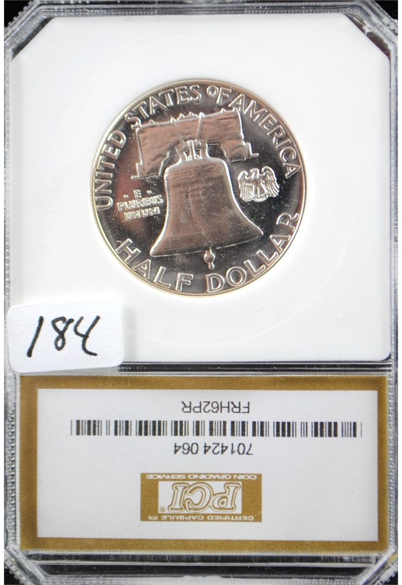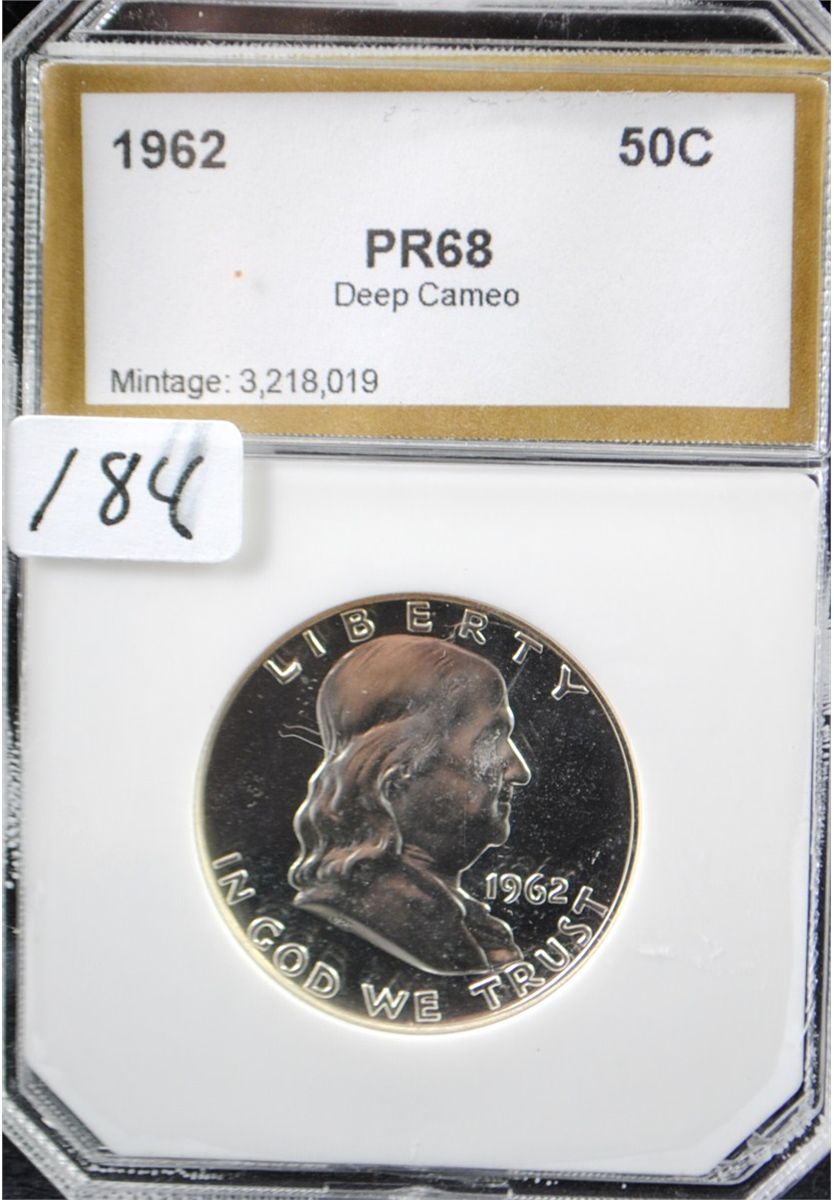 1962 FRANKLIN HALF DOLLAR PCI PROOF 68DEEP CAMEO (A PROOF 68 DEEP CAMEO LISTS @ $600.00)