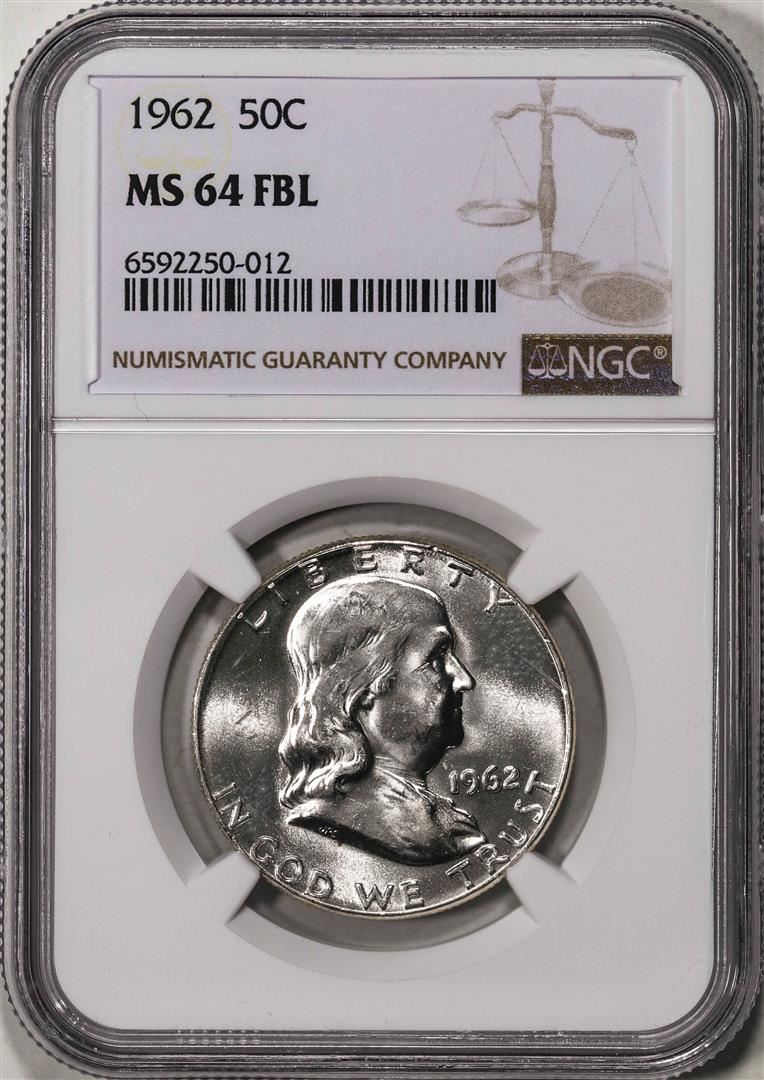 One 1962 Franklin Half Dollar Coin NGC MS64FBL. NGC Certified.