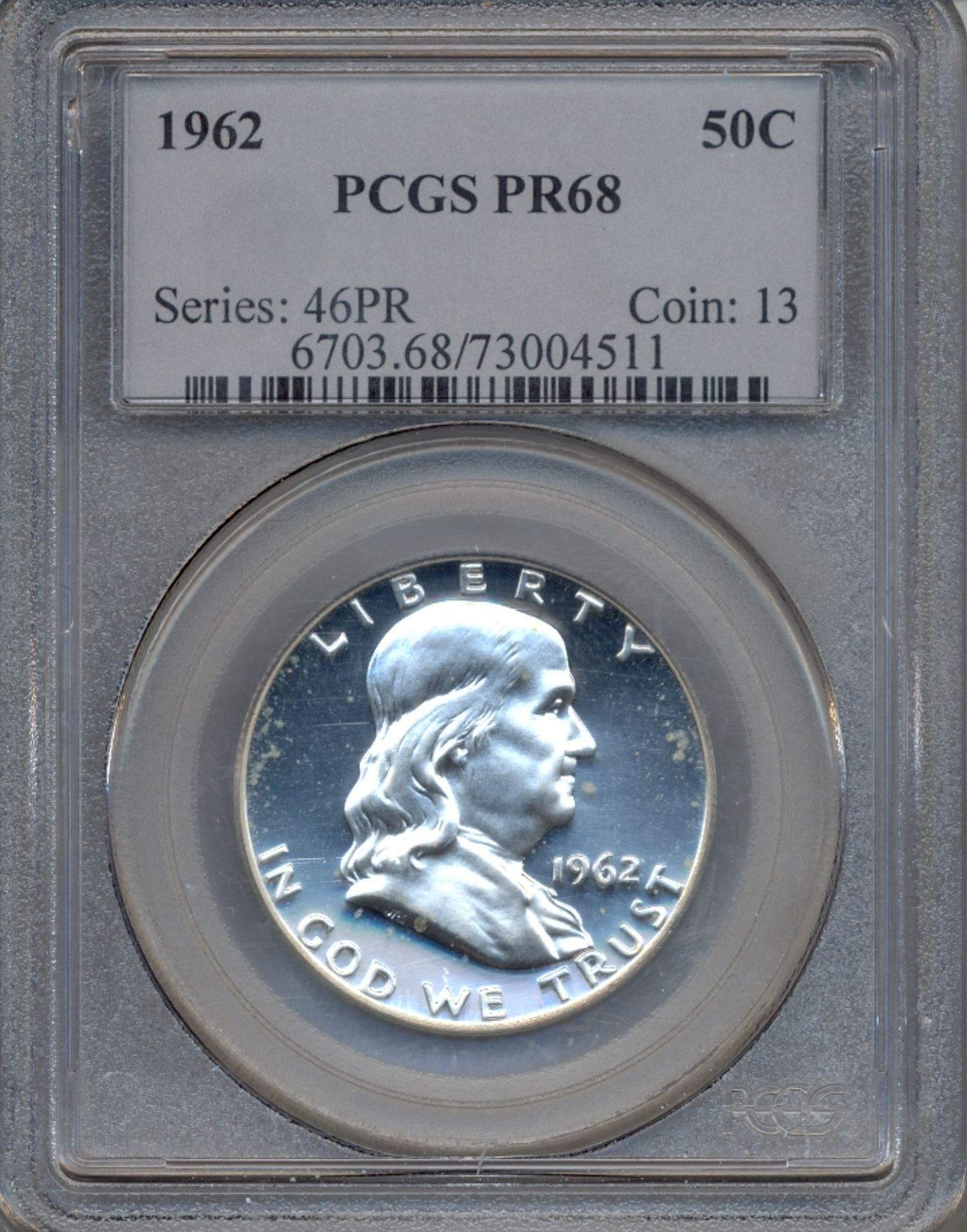 One 1962 Franklin Half Dollar Coin PCGS PR68.