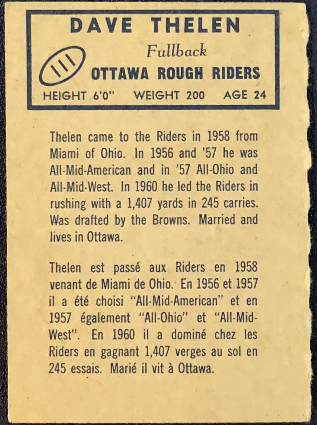 Card #111 CFL, football, vintage, OPC, hall of fame