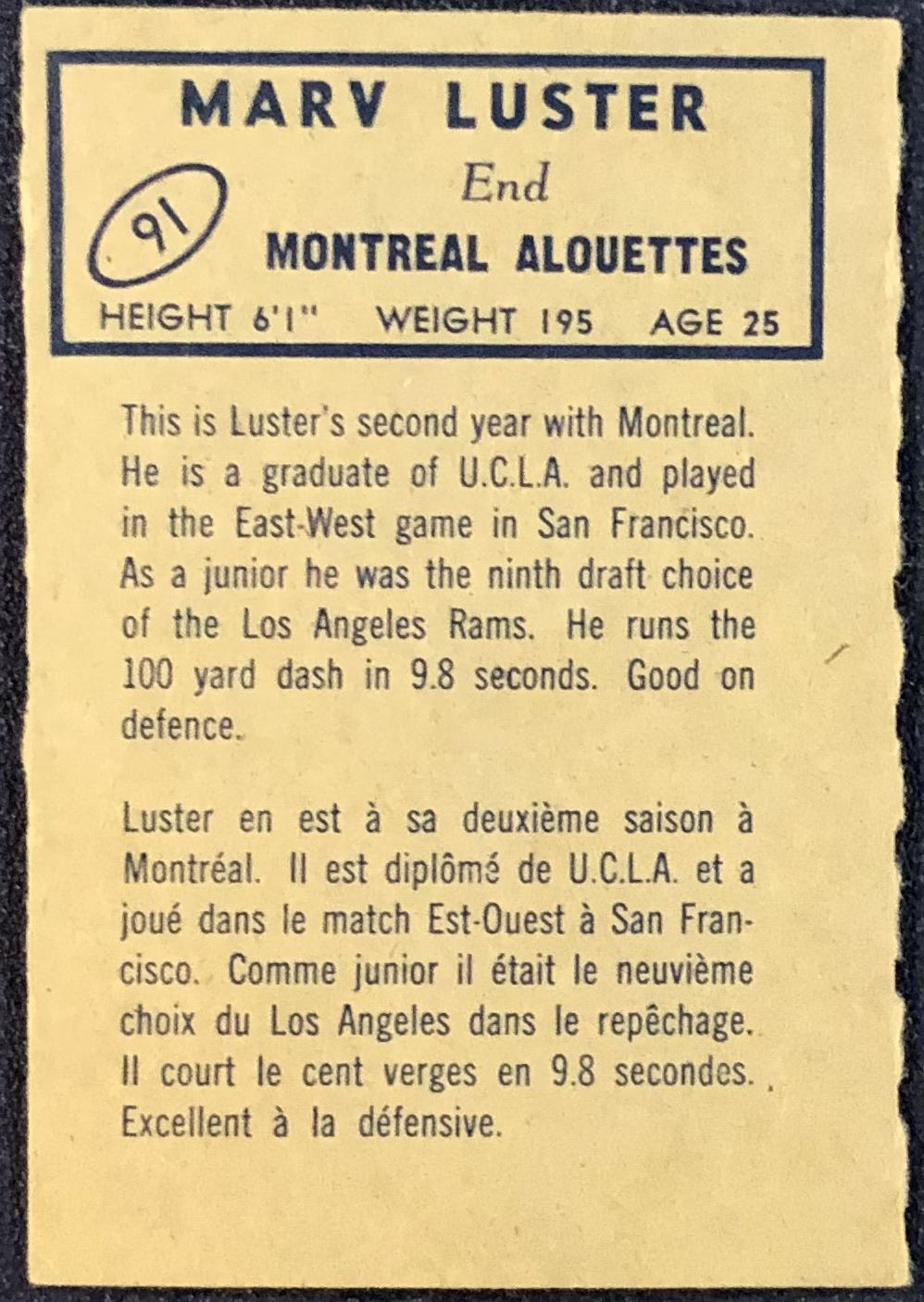 Card #91 CFL, OPC, football, vintage, hall of fame