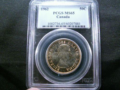 1962 PCGS MS65 The obverse has some golden tones while the reverse is fully brilliant.