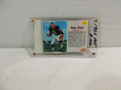 1962 POST CEREAL #106 FOOTBALL CARD DOUG ATKINS. VERTICLE CREASE. AS SHOWN. VIEW PICTURE FOR DETAIL.