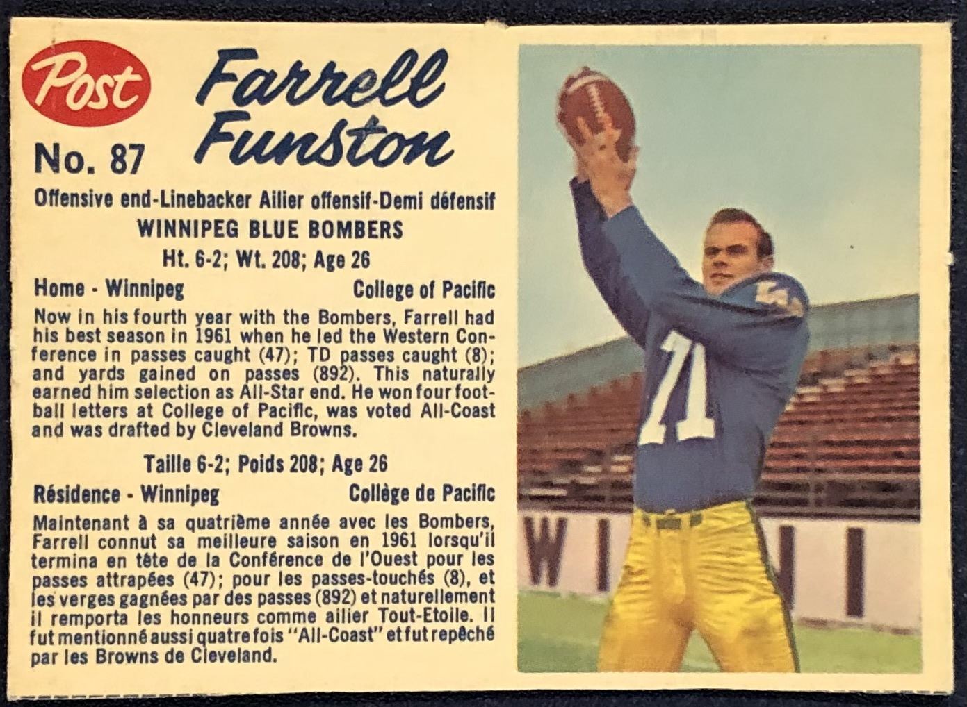 Card #87 CFL, football, vintage