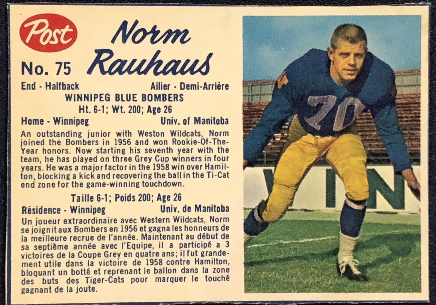Card #75 CFL, football, vintage