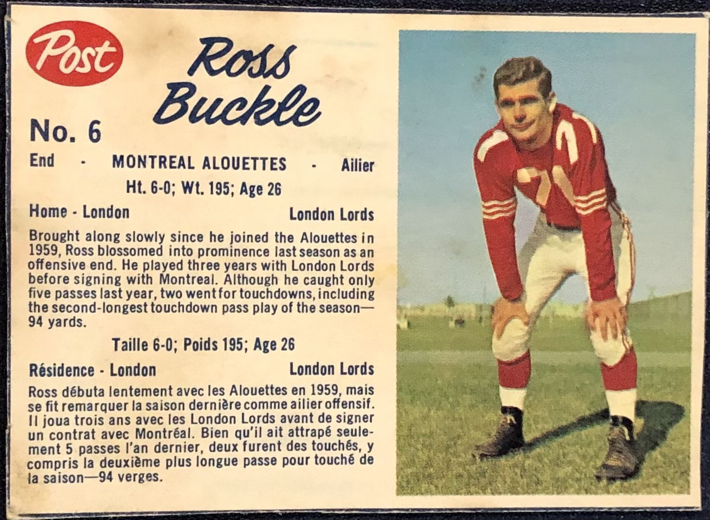 Card #6 CFL, football, vintage