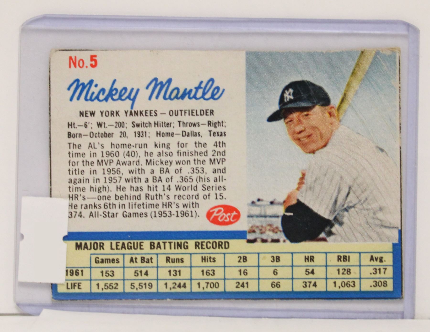 1962 POST MICKEY MANTLE BASEBALL CARD